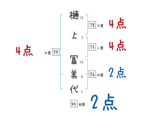 樋上冨美代さんの画数の鑑定結果