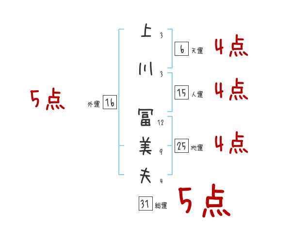 上川冨美夫さんの画数の鑑定結果