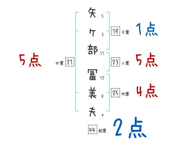矢ヶ部冨美夫さんの画数の鑑定結果