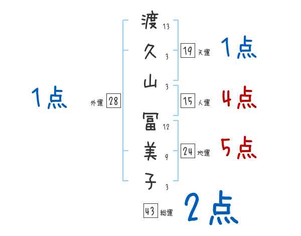 外運![]() | 渡久山冨美子さんの外運は28画の1つ星!家庭環境に注意。スポーツで活躍できる能力があるかも。 生活面を象徴する運勢です。外部から受ける影響力を表し、結婚運、家庭運や職場、環境への順応性を表します。 |