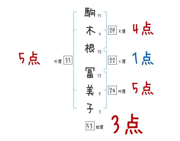 駒木根冨美子さんの画数の鑑定結果