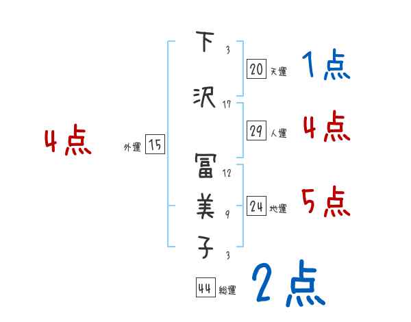下沢冨美子さんの画数の鑑定結果