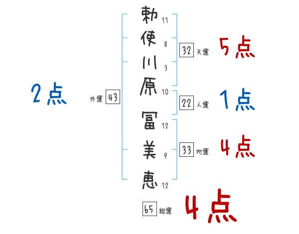 家系が持つ宿命的な運勢を表します。祖先から受け継いだ苗字ですので自分の力が及びません。家柄を象徴します。