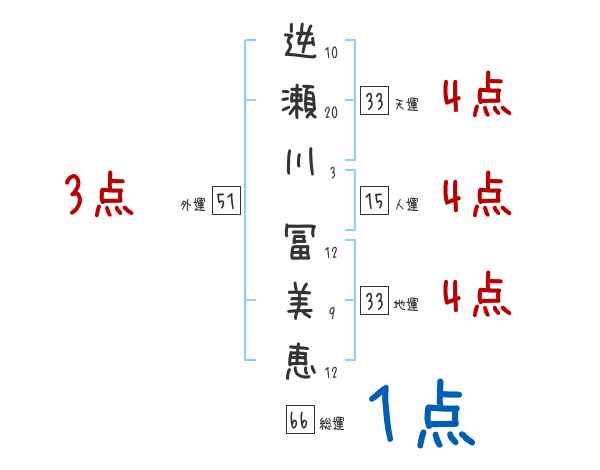 逆瀬川冨美恵さんの画数の鑑定結果
