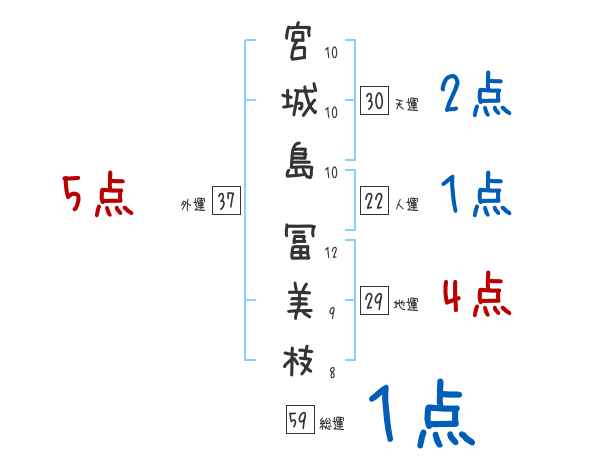 宮城島冨美枝さんの画数の鑑定結果