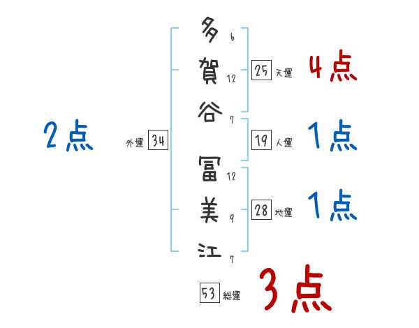 多賀谷冨美江さんの画数の鑑定結果