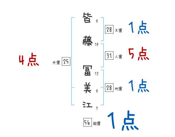 皆藤冨美江さんの画数の鑑定結果