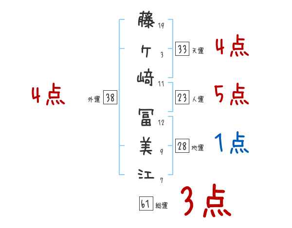 藤ヶ﨑冨美江さんの画数の鑑定結果