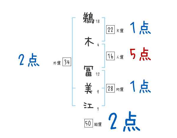 鵜木冨美江さんの画数の鑑定結果