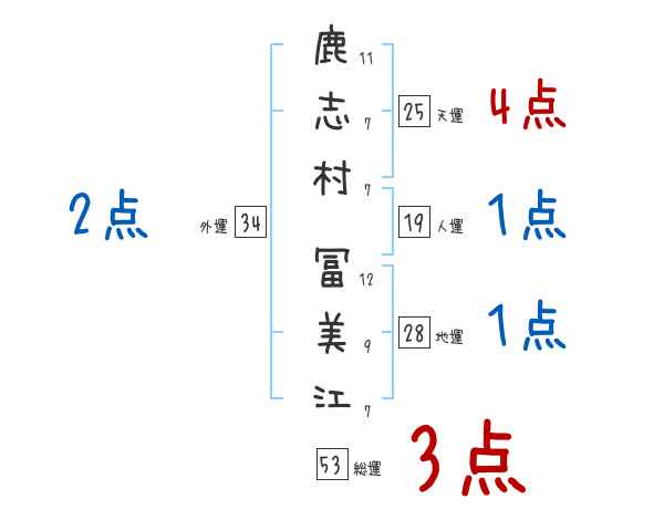 鹿志村冨美江さんの画数の鑑定結果