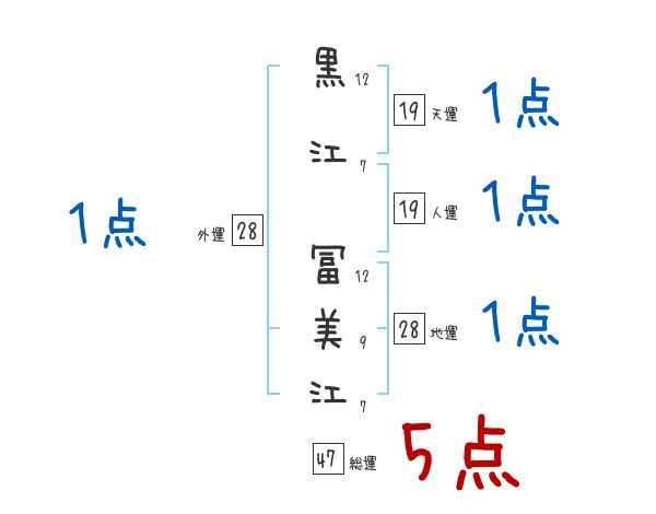 外運![]() | 黒江冨美江さんの外運は28画の1つ星!家庭環境に注意。スポーツで活躍できる能力があるかも。 生活面を象徴する運勢です。外部から受ける影響力を表し、結婚運、家庭運や職場、環境への順応性を表します。 |