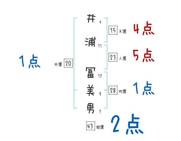 総運![]() | 井浦冨美男さんの総運は43画の2つ星!頑固な性格で独立心が強いかも。やや非現実的で浪費に注意しましょう。 あなたの人生を表す1番重要な運勢です。生涯を通じて影響する総合運となり、主に50歳以降の晩年期に影響を及ぼします。 |