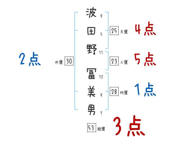 波田野冨美男さんの画数の鑑定結果