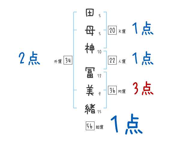 外運![]() | 田母神冨美緒さんの外運は34画の2つ星!独創性に優れるが、自尊心が強く災難に注意しましょう。 生活面を象徴する運勢です。外部から受ける影響力を表し、結婚運、家庭運や職場、環境への順応性を表します。 |