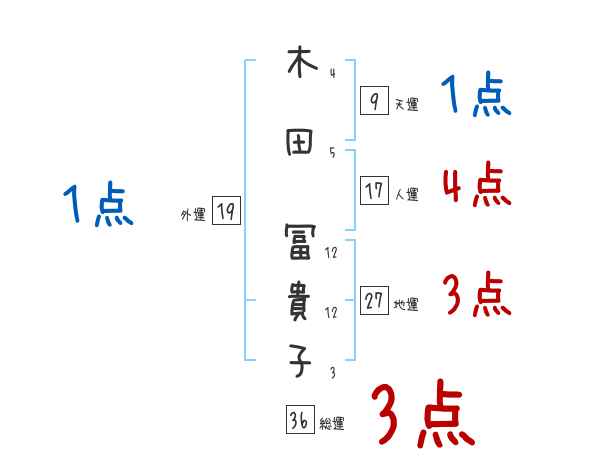 総運![]() | 木田冨貴子さんの総運は36画の3つ星!先見性が豊かです。多少神経質で苦労することも。 あなたの人生を表す1番重要な運勢です。生涯を通じて影響する総合運となり、主に50歳以降の晩年期に影響を及ぼします。 |