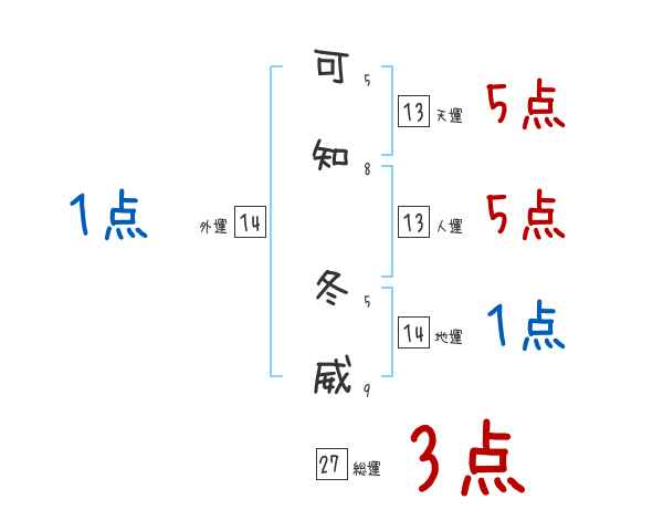 可知冬威さんの画数の鑑定結果