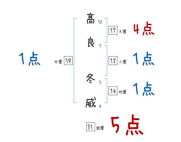 髙良冬威さんの画数の鑑定結果