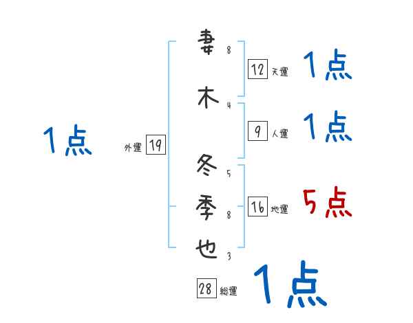 天運![]() | 妻木冬季也さんの天運は12画の1つ星!簡単な失敗で諦めてしまいやすいかも。着実に行動すると良いでしょう。 家系が持つ宿命的な運勢を表します。祖先から受け継いだ苗字ですので自分の力が及びません。家柄を象徴します。 |