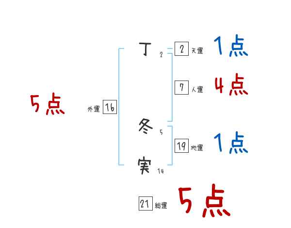 丁冬実さんの画数の鑑定結果