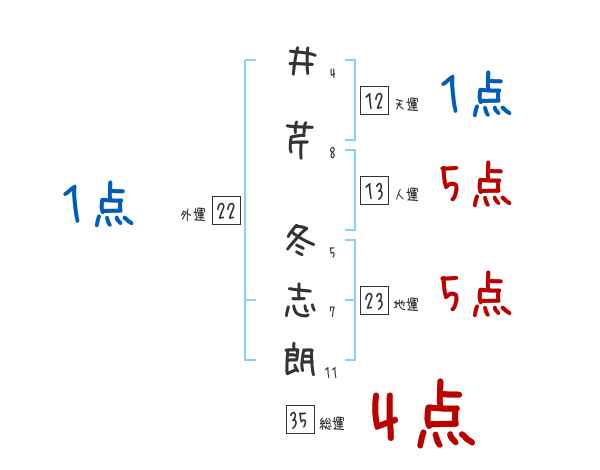 総運![]() | 井芹冬志朗さんの総運は35画の4つ星!温厚な性格で感受性が高い。穏和な性格で人望が厚い。 あなたの人生を表す1番重要な運勢です。生涯を通じて影響する総合運となり、主に50歳以降の晩年期に影響を及ぼします。 |