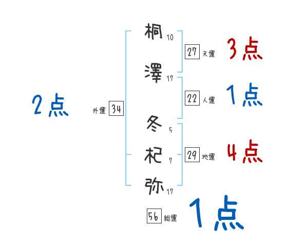 桐澤冬杞弥さんの画数の鑑定結果