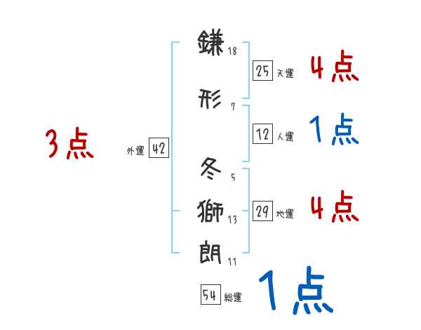 天運![]() | 鎌形冬獅朗さんの天運は25画の4つ星!個性があり才能があふれる。強運の持ち主で発展する。 家系が持つ宿命的な運勢を表します。祖先から受け継いだ苗字ですので自分の力が及びません。家柄を象徴します。 |