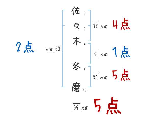 佐々木冬磨さんの画数の鑑定結果