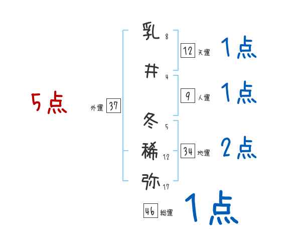 乳井冬稀弥さんの画数の鑑定結果