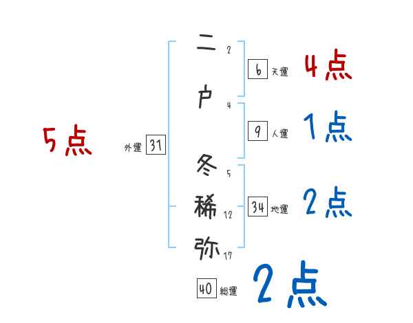 天運![]() | 二戸冬稀弥さんの天運は6画の4つ星!慎重な努力家で信頼を得る。誠実な精神で向上心に優れる。 家系が持つ宿命的な運勢を表します。祖先から受け継いだ苗字ですので自分の力が及びません。家柄を象徴します。 |
