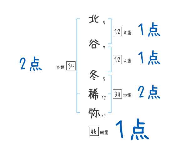 北谷冬稀弥さんの画数の鑑定結果