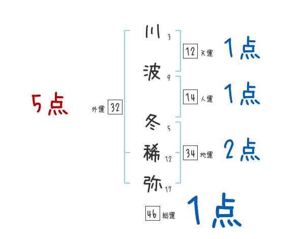 川波冬稀弥さんの画数の鑑定結果