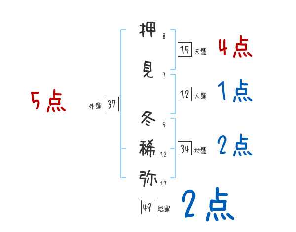 天運![]() | 押見冬稀弥さんの天運は15画の4つ星!人徳があり出世する。順調に物事を進め円満な人生。 家系が持つ宿命的な運勢を表します。祖先から受け継いだ苗字ですので自分の力が及びません。家柄を象徴します。 |