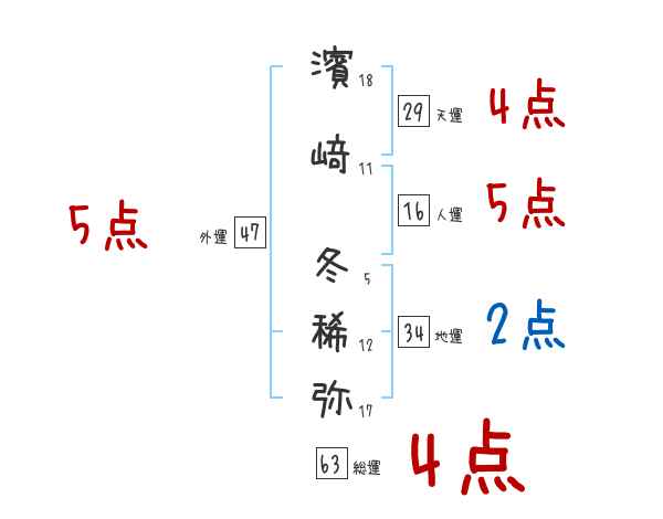 濱﨑冬稀弥さんの画数の鑑定結果