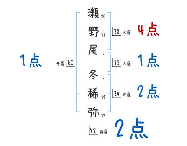 瀬野尾冬稀弥さんの画数の鑑定結果