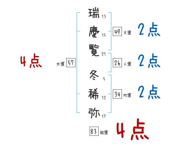 瑞慶覧冬稀弥さんの総運は83画の4つ星