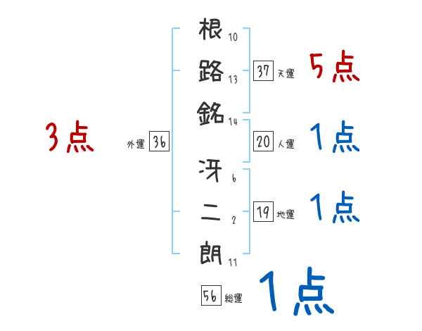 根路銘冴二朗さんの画数の鑑定結果