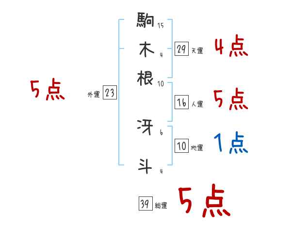 外運![]() | 駒木根冴斗さんの外運は23画の5つ星!想像力に優れ活力がある。一代で成功し名誉を手に入れる。 生活面を象徴する運勢です。外部から受ける影響力を表し、結婚運、家庭運や職場、環境への順応性を表します。 |