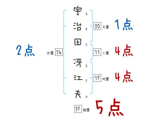 総運![]() | 宇治田冴江夫さんの総運は37画の5つ星!努力家で順応性に優れる。現実的な考え方ができ忠実に物事をこなす。 あなたの人生を表す1番重要な運勢です。生涯を通じて影響する総合運となり、主に50歳以降の晩年期に影響を及ぼします。 |