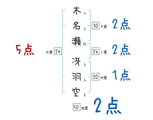 天運![]() | 木名瀬冴羽空さんの天運は30画の2つ星!浮き沈みの激しさに注意しましょう。 家系が持つ宿命的な運勢を表します。祖先から受け継いだ苗字ですので自分の力が及びません。家柄を象徴します。 |