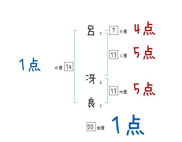 外運![]() | 呂冴良さんの外運は14画の1つ星!人に対して優しいがストレスを溜め込みがち。人間関係のトラブルを避けるよう気をつけましょう。 生活面を象徴する運勢です。外部から受ける影響力を表し、結婚運、家庭運や職場、環境への順応性を表します。 |