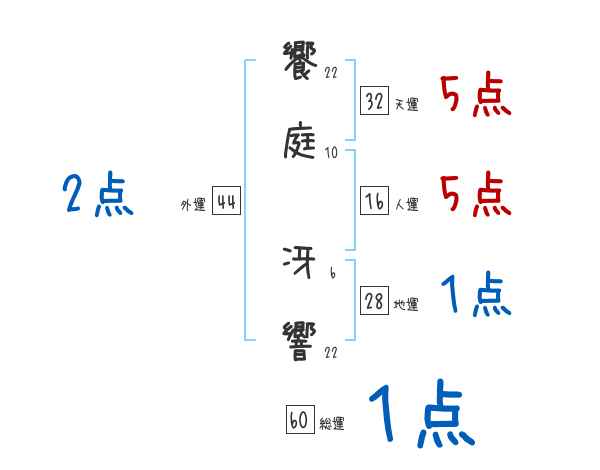 饗庭冴響さんの画数の鑑定結果