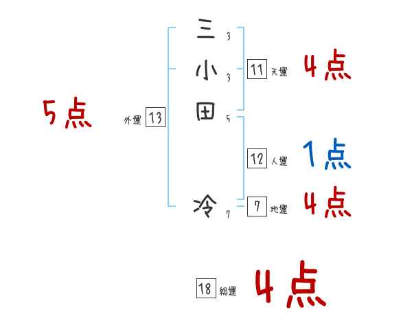 三小田冷さんの画数の鑑定結果