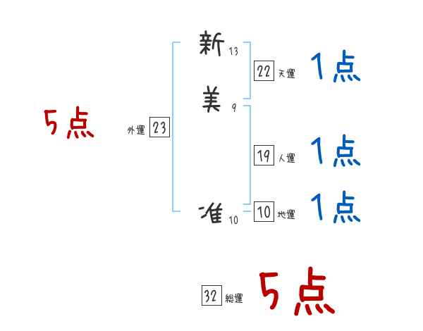 新美准さんの画数の鑑定結果