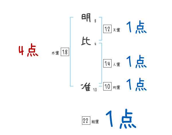 外運![]() | 明比准さんの外運は18画の4つ星!情熱的で剛気。忍耐力があり信頼される。 生活面を象徴する運勢です。外部から受ける影響力を表し、結婚運、家庭運や職場、環境への順応性を表します。 |