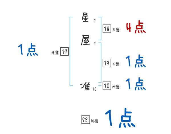 星屋准さんの画数の鑑定結果