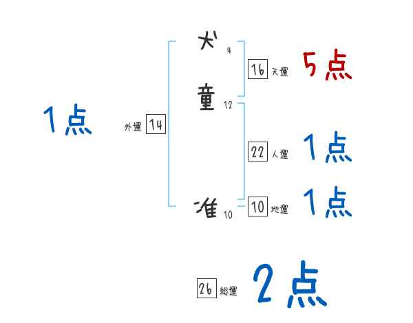 人運![]() | 犬童准さんの人運は22画の1つ星!努力することが苦手ないっぽう手先が器用。芸術性にも優れる。 性格や才能などを表す2番目に重要な運勢です。人間関係や協調性、社会的な成功に影響します。主に20歳から50歳ぐらいまでの中年期の運勢を表します。 |