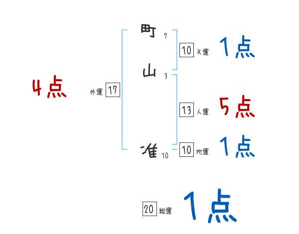 外運![]() | 町山准さんの外運は17画の4つ星!積極的な行動力。地位を気づき財産を手に入れる。純粋な心と直感力。 生活面を象徴する運勢です。外部から受ける影響力を表し、結婚運、家庭運や職場、環境への順応性を表します。 |