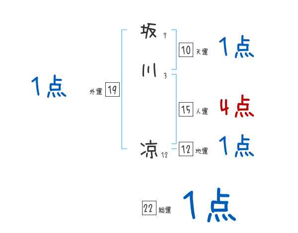 坂川凉さんの画数の鑑定結果