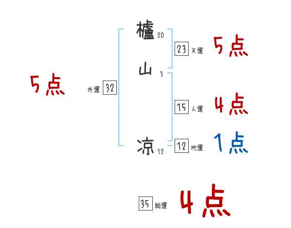 櫨山凉さんの画数の鑑定結果