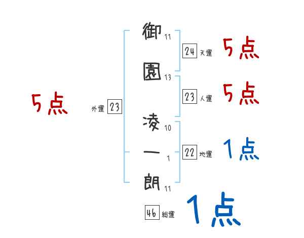 御園凌一朗さんの画数の鑑定結果